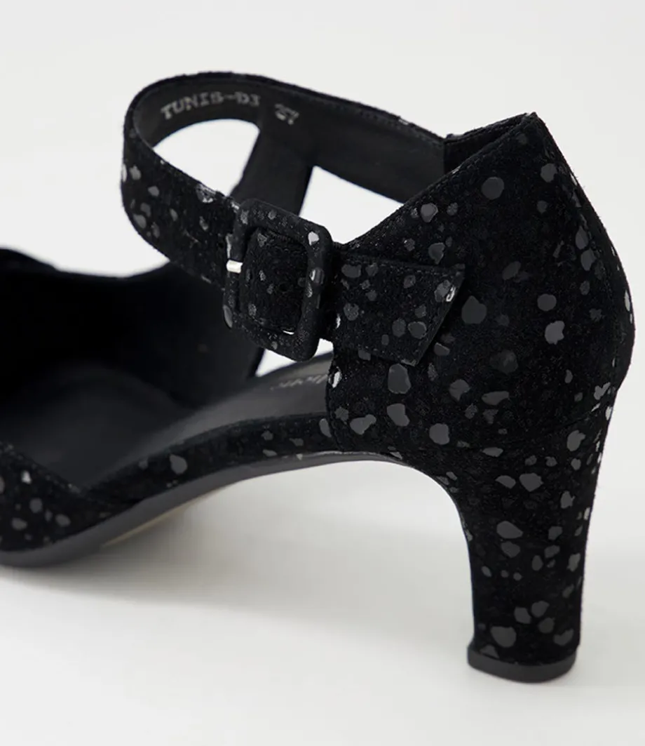 Tunis Black Sparkle Suede Mary Jane Heels<DJANGO & JULIETTE Cheap