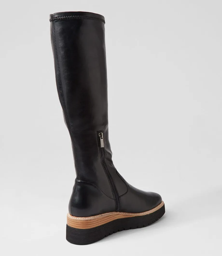 Udoe Black Natural Veneer Stretch Knee High Boots<TOP END Flash Sale