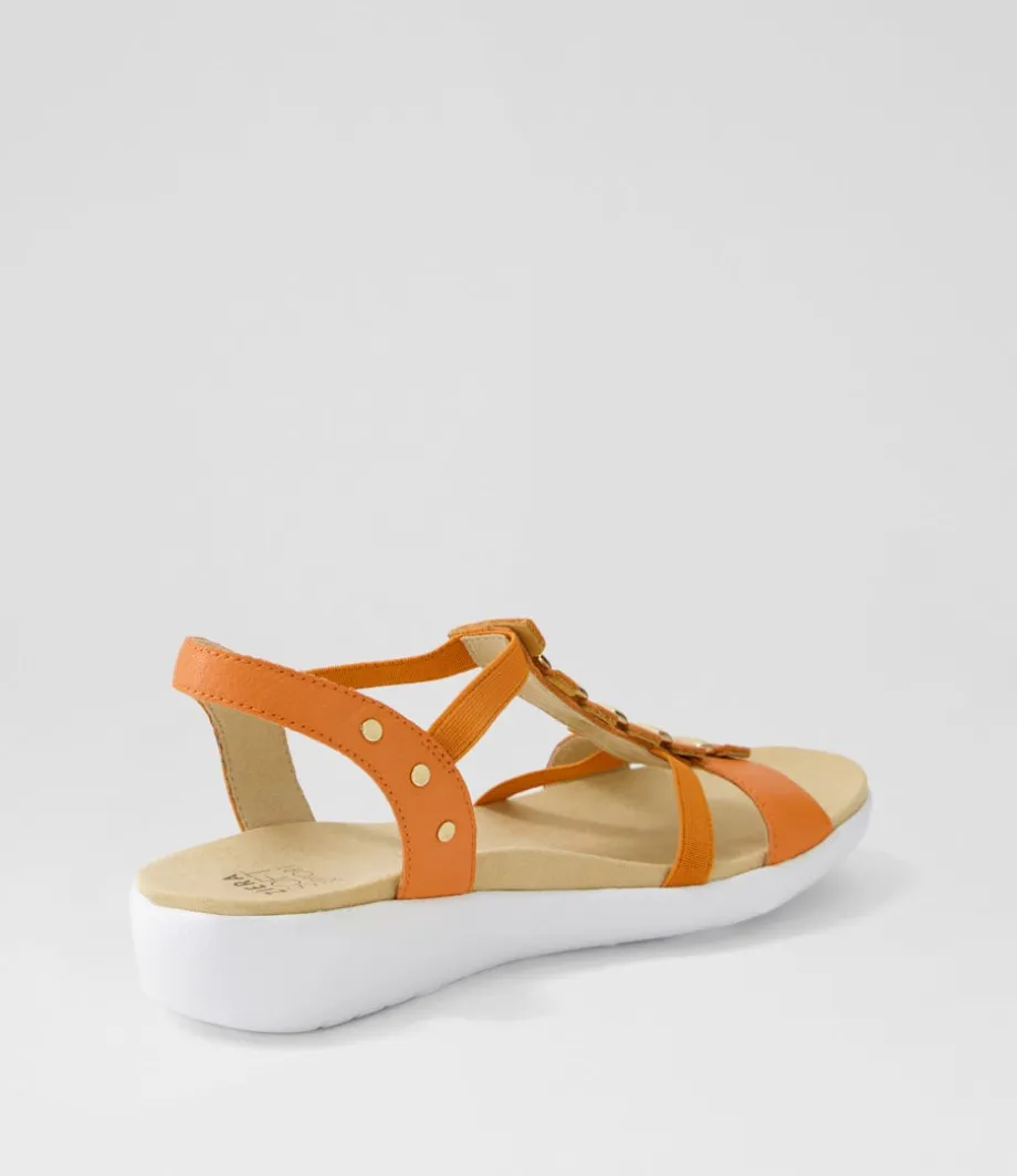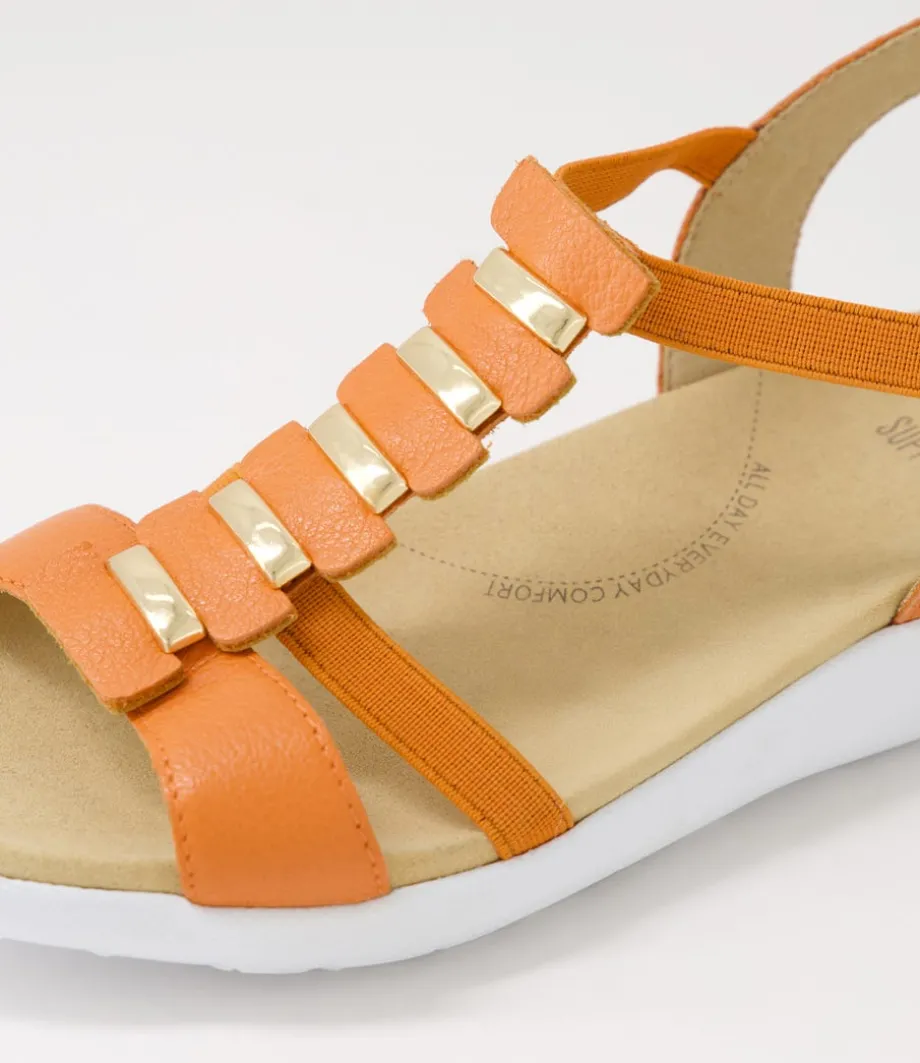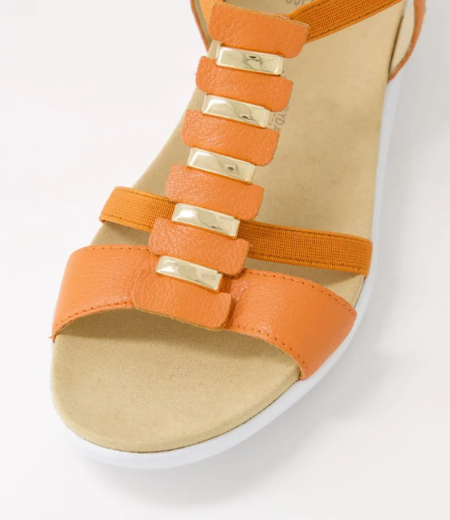 Ulover W Bright Orange Leather Elastic Sandals<ZIERA Sale