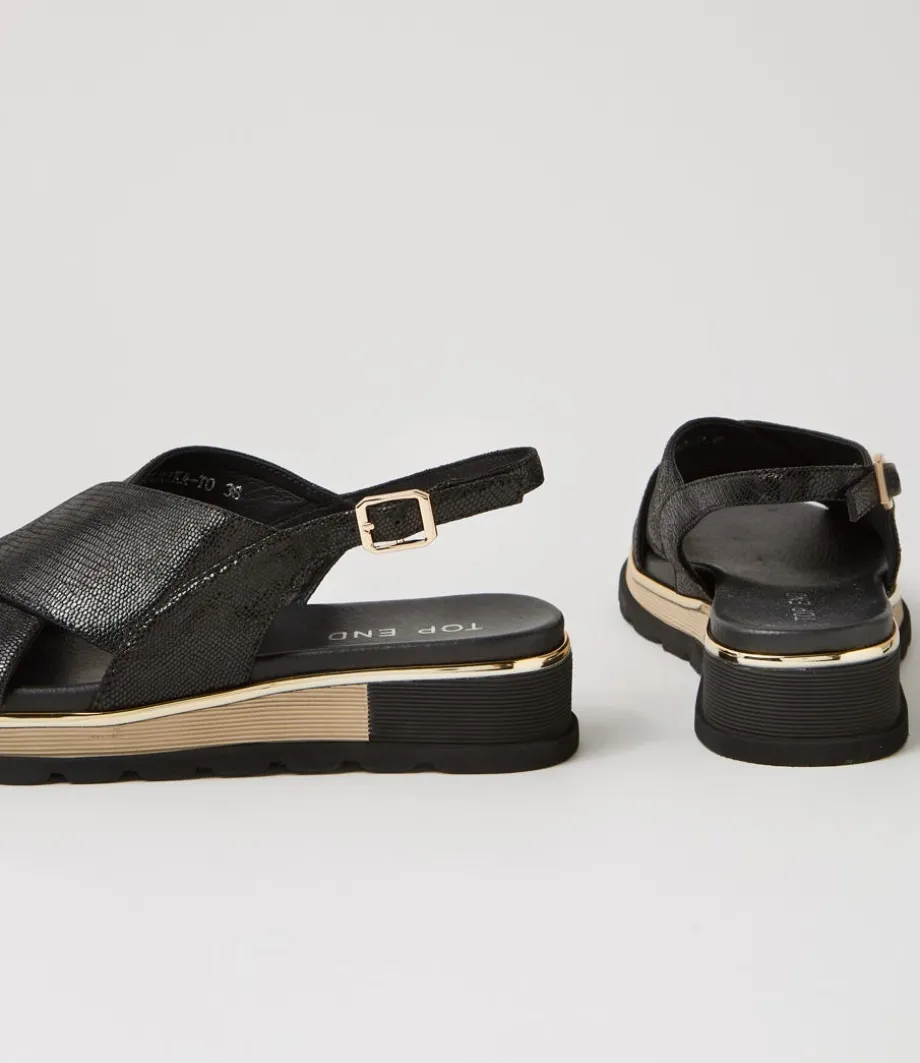 Ulrika Black Lizard Leather Sandals<TOP END Online