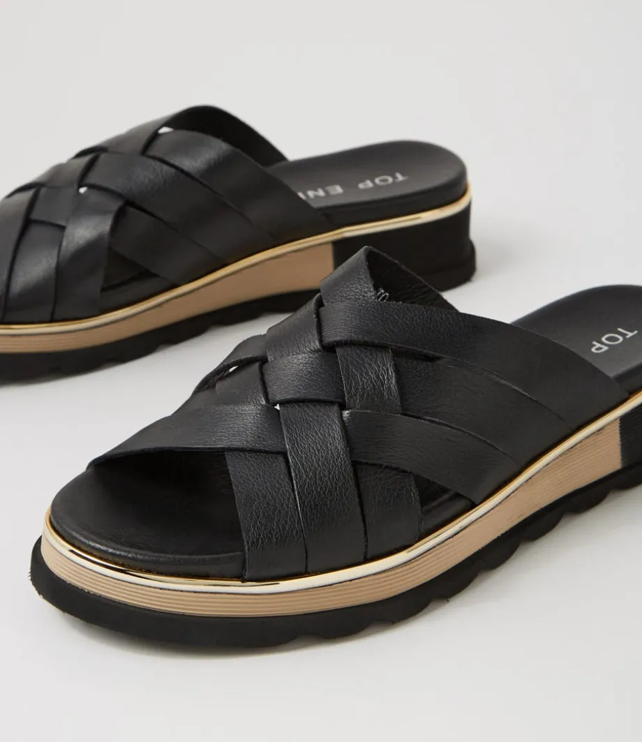 Ulysza Black Leather Slides<TOP END Cheap
