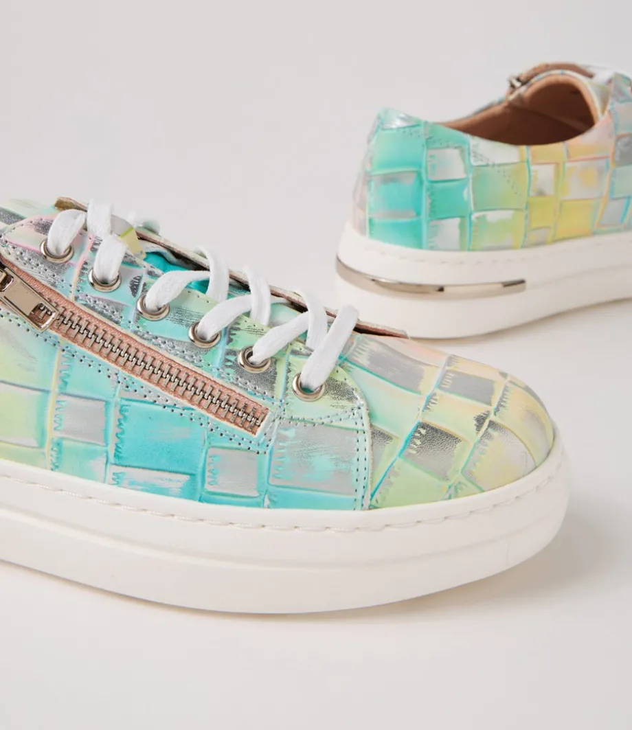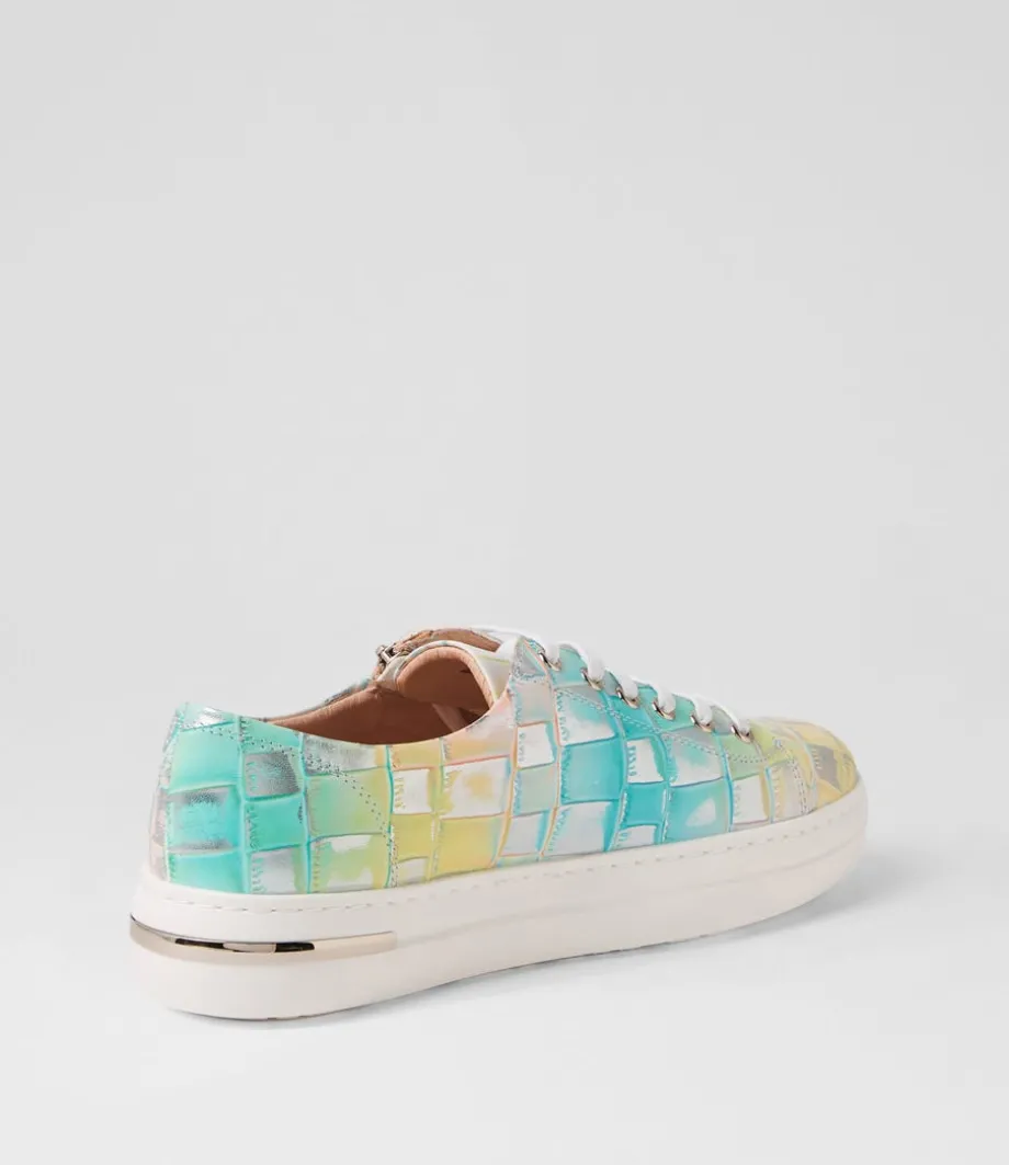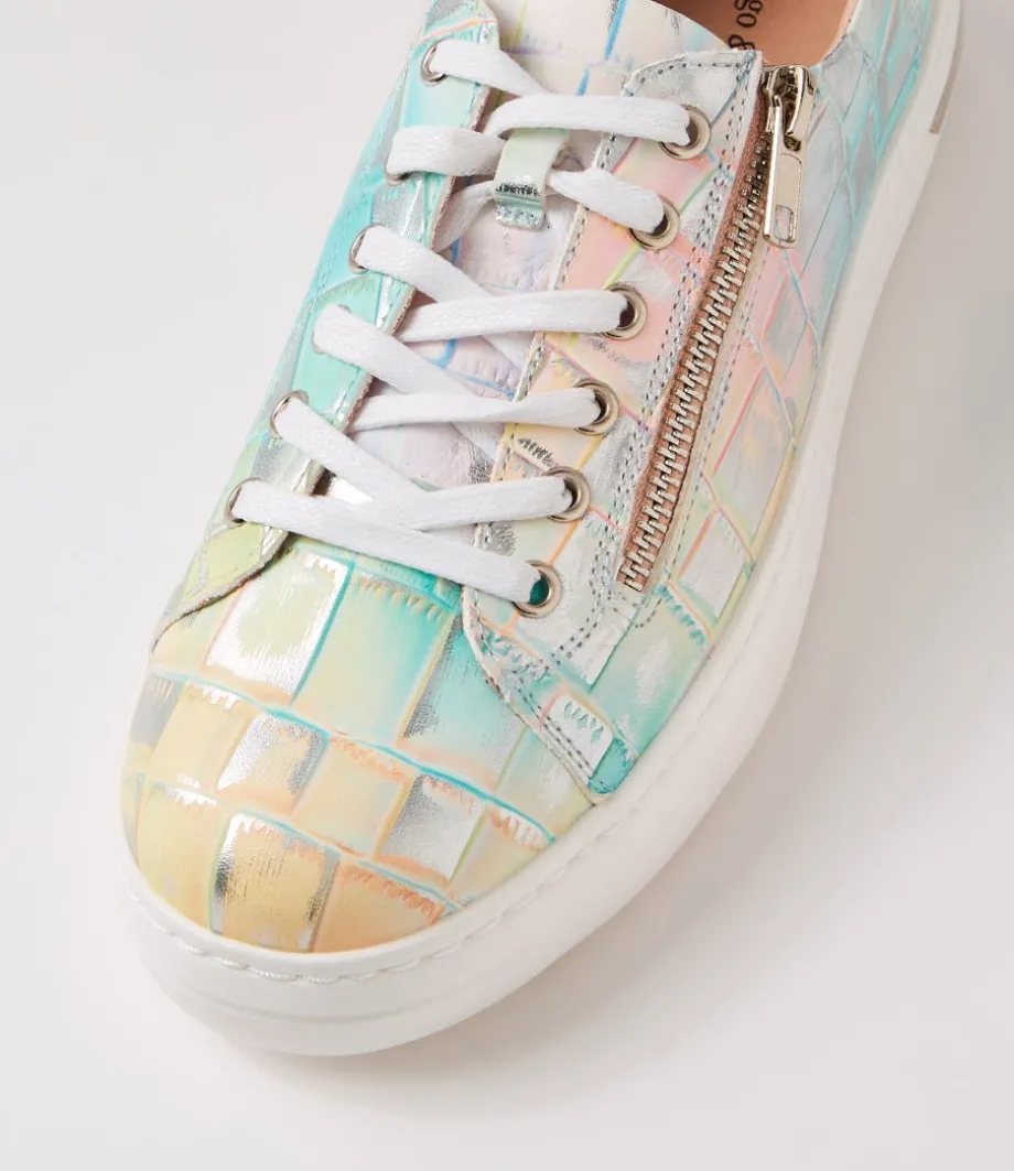 Wovi Pink Croc Print White Leather Sneakers<DJANGO & JULIETTE Cheap