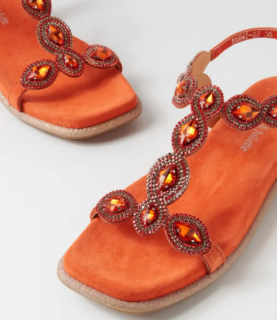 Yanni Orange Suede Jewels Sandals<DJANGO & JULIETTE Sale